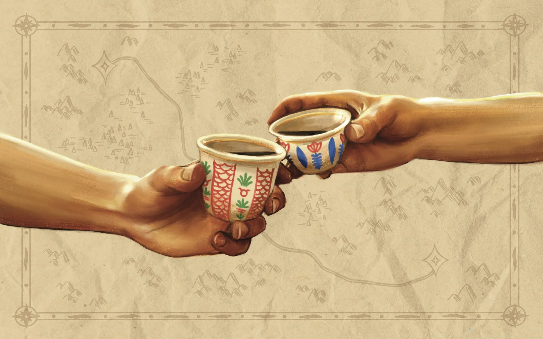 In 2026, I was hired to create a large guestbook poster that incorporated cultural symbols from Lebanon and Syria, representing both bride and groom.