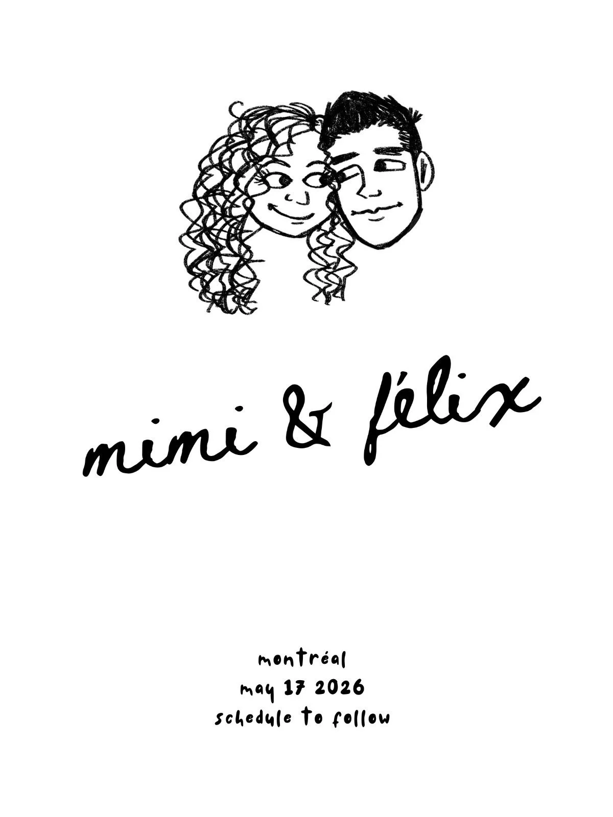 In 2025, I was hired to design a simple cartoonish caricature of a bride and groom for their virtual wedding invitations, balancing likeness with style according to the client’s desire.